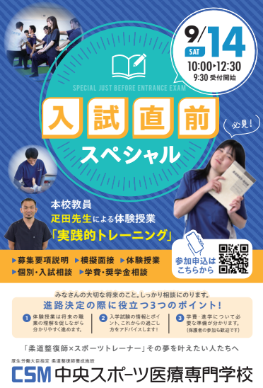 また、体験授業は疋田先生による「実践的トレーニング」を実施予定。