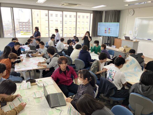 社会や地域における課題を発見し、その課題を解決するために自分たちで活動していく内容をチームで話し合い・立案します。