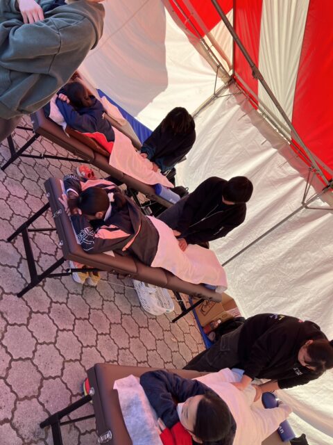 私たちトレーナー部は会場内に「トレーナーブース」を設置し、ランナーの皆さんのコンディショニングやケアを担当しました 。