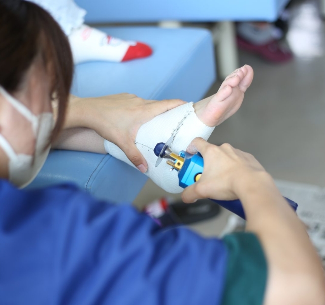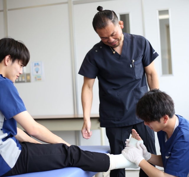 ケガの処置や体のコンディショニングケアなど、接骨院やスポーツ現場で実際に行っている治療内容を軸に実技を行います!