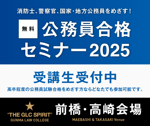 公務員合格セミナー2025 前橋・高崎会場[4月〜7月]受講生受付中。
