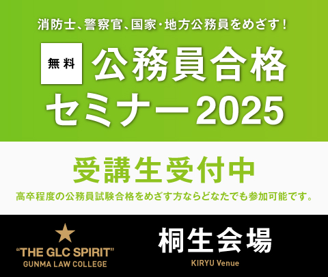 公務員合格セミナー2025 桐生会場[4月〜7月]受講生受付中。