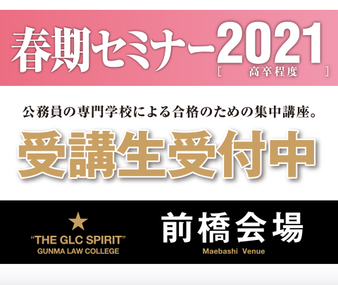 ◎公務員試験春期セミナー開催につきまして、現在、拡大が懸念されています新型コロナウィルスの問題に伴い、今後の状況次第で中止または一部内容等が変更になる可能性があります。中止または変更する場合は本校のホームページでお知らせ致します。