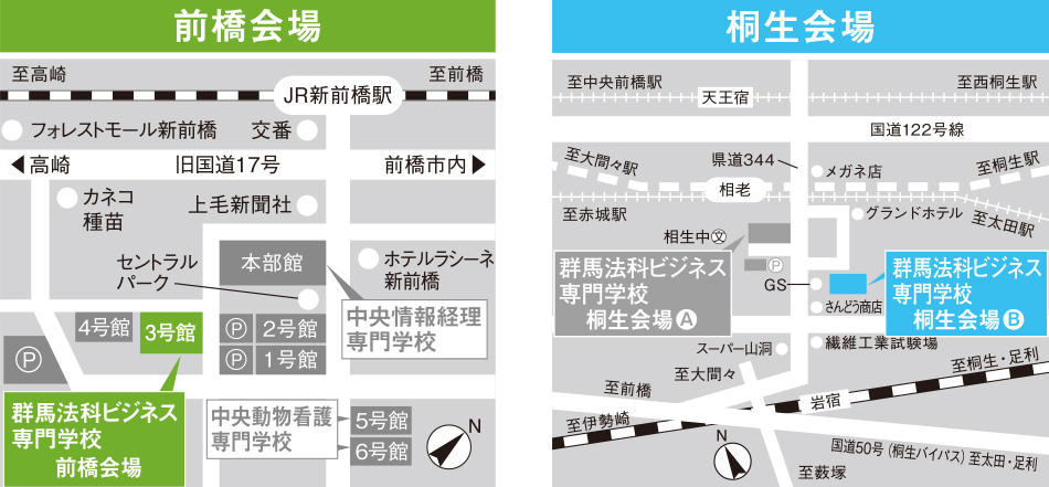 ●会場:前橋 群馬法科ビジネス専門学校(JR新前橋駅下車 徒歩2分)