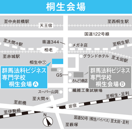 桐生会場 群馬法科ビジネス専門学校 (JR岩宿駅下車 徒歩17分/東武桐生線相生駅 徒歩3分)
