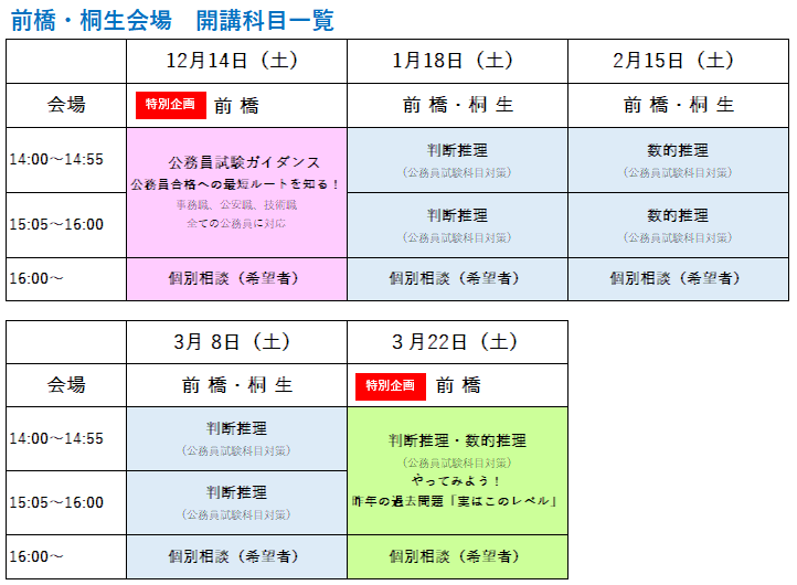 無料:公務員合格セミナー2025 前橋・桐生で開催。 受講生受付中!