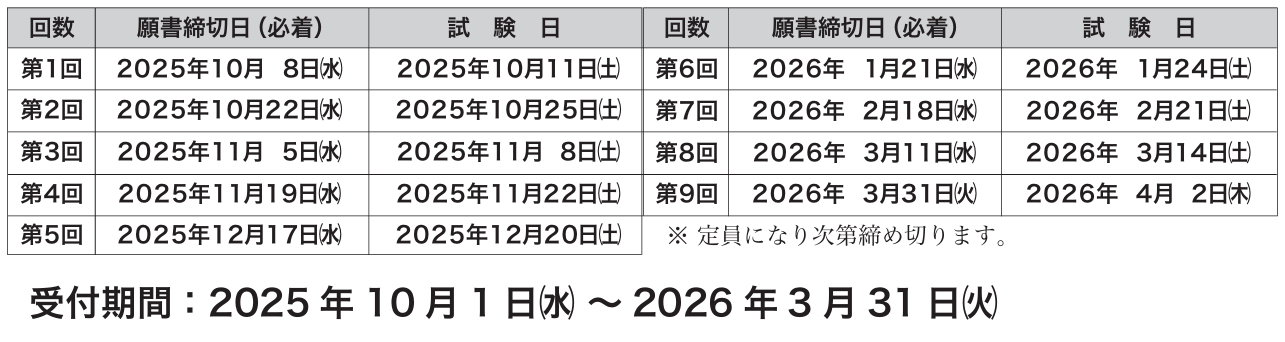 2026年度における募集についてですが、10月1日(水)より受付開始となります。