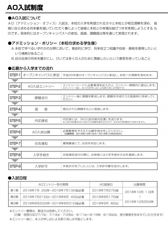 本校では「やる気」と「情熱」を重視した『AO入学選考』を実施しています。